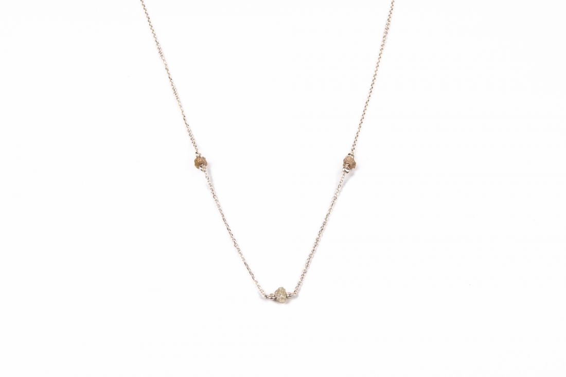 Surové diamanty jsou od sebe odděleny mezerou, díky které je šperk nápaditý a zároveň působí stále minimalisticky.