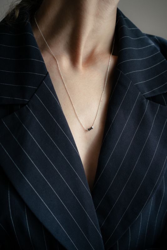Náhrdelník No.3 Sol Collar má tři surové černé diamanty zachycené na jemném stříbrném řetízku.