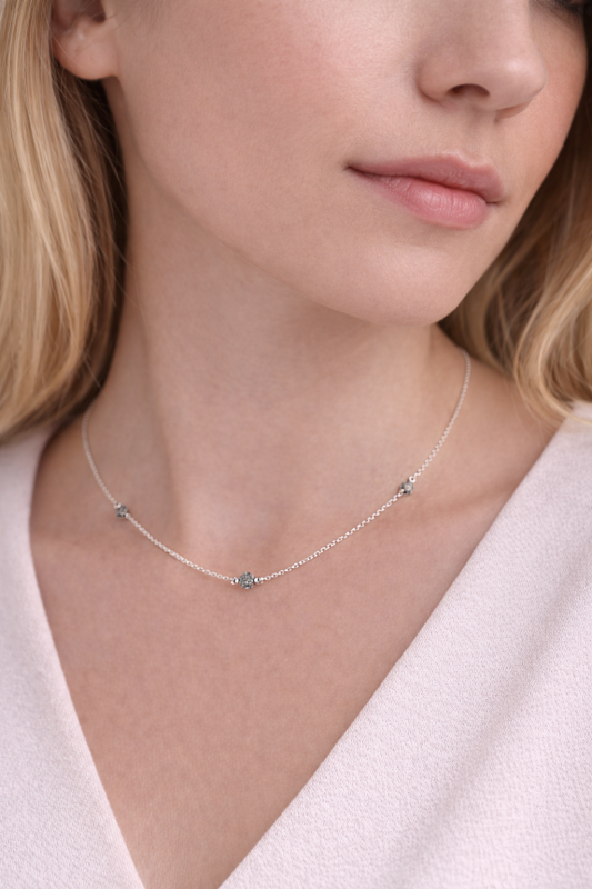 Náhrdelník se třemi většími černými diamanty na jemném stříbrném řetízku.