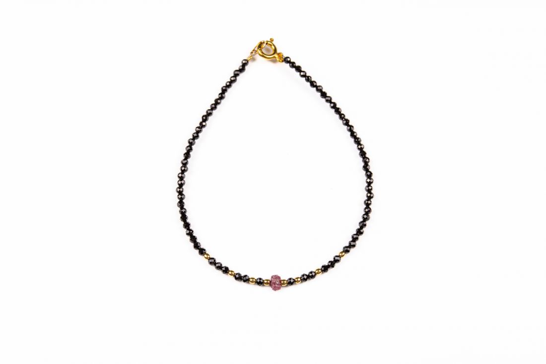 Náramek s růžovým surovým diamantem a přírodním spinelem.