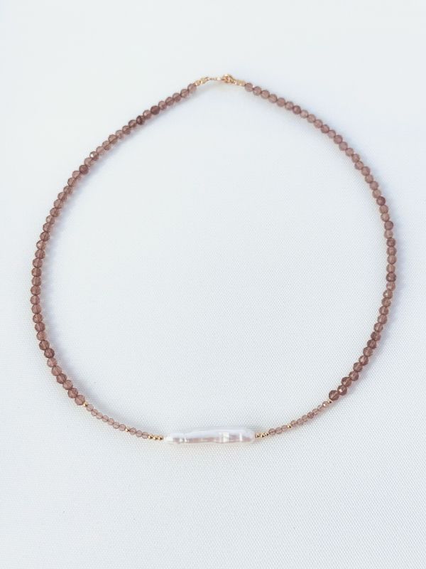 Náhrdelník je vytvořen ze dvou velikostí broušené záhnědy, jejichž teplý kouřový odstín působí velmi sofistikovaně a snadno se kombinuje s každým stylem.